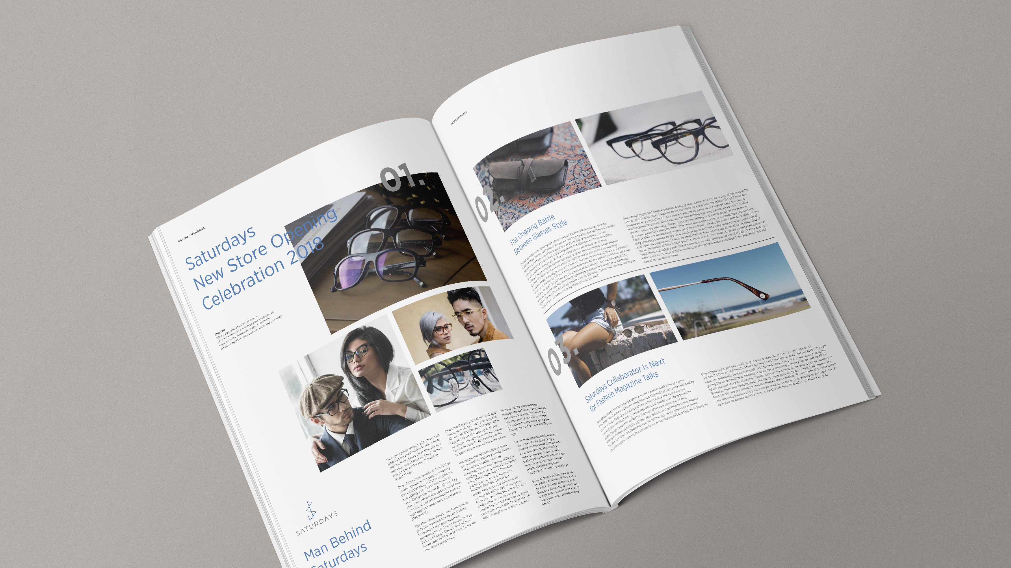 Based on this sentiment, the name "Saturdays" was born to represent their eyewear style which is able to give an easygoing as well as chic impression to the wearers. Furthermore, the shape triangle used in the logogram implies stability, power, and energy when it rests on a solid base—another message we want to convey